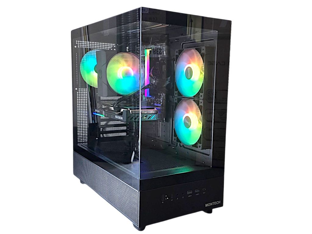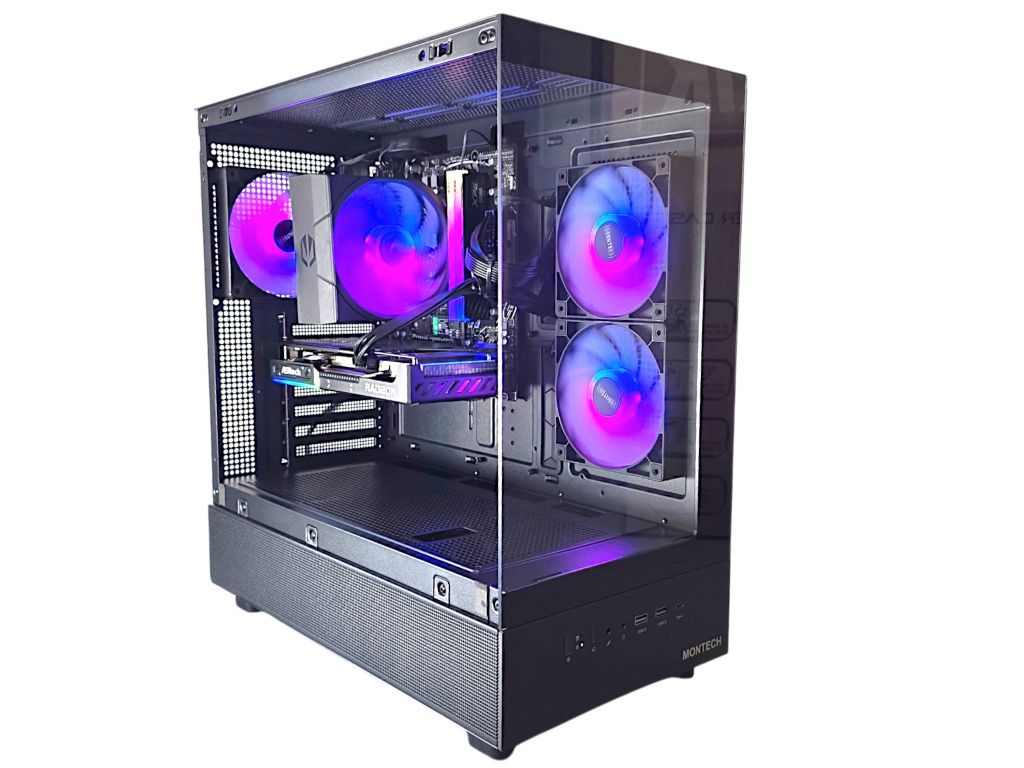 - Montech X3 - základní kvalitní skříň s vynikajícím poměrem cena/výkon obsahující 6 RGB ventilátorů, podsvícení jde zapnout či vypnout tlačítkem na PC skříni. Rychlost ventilátorů nejde regulovat (nastaveno z výroby na ideální provoz pro perfektní ventilaci), u RGB duhová barva nelze měnit. Skříň má jednoduše otevíratelný prosklený bok na pantech. Skříň obsahuje shora 2x USB 2.0 a 1x USB 3.0 a jack vstupy pro mikrofon a sluchátka. Rozměry 21 cm šířka, 48 cm výška, 37 cm hloubka. K dispozici v černé i bílé barvě.