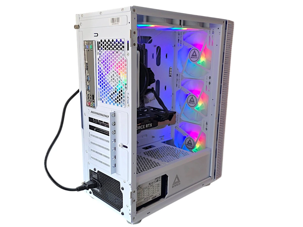- Montech X3 - základní kvalitní skříň s vynikajícím poměrem cena/výkon obsahující 6 RGB ventilátorů, podsvícení jde zapnout či vypnout tlačítkem na PC skříni. Rychlost ventilátorů nejde regulovat (nastaveno z výroby na ideální provoz pro perfektní ventilaci), u RGB duhová barva nelze měnit. Skříň má jednoduše otevíratelný prosklený bok na pantech. Skříň obsahuje shora 2x USB 2.0 a 1x USB 3.0 a jack vstupy pro mikrofon a sluchátka. Rozměry 21 cm šířka, 48 cm výška, 37 cm hloubka. K dispozici v černé i bílé barvě.
