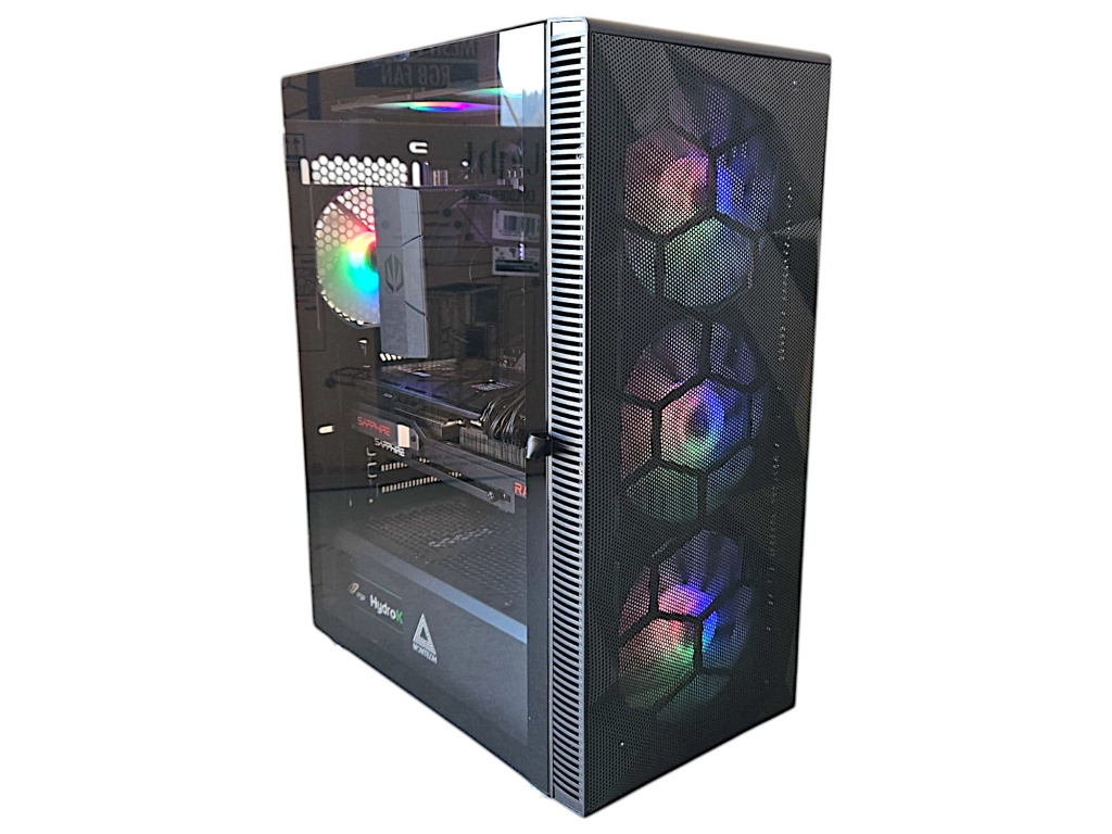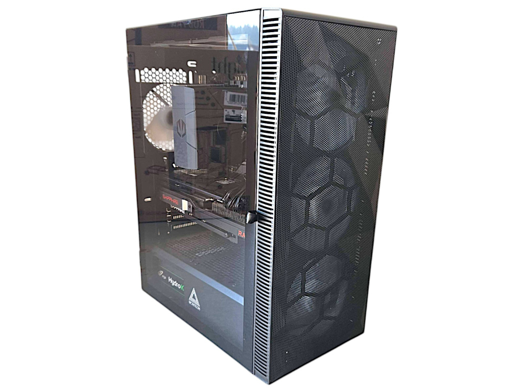- Montech XR - kvalitní skříň typu "akvárko" se skvělou viditelností vnitřku počítače a výborným prouděním vzduchu, 3 ks regulovatelných ventilátorů s možností změny barvy RGB. Vpředu dole jsou konektory USB 3.0, USB-C (aktivní pouze s příplatkovou deskou B550/650/850) a sluchátka a mikrofon. Rozměry 23 cm šířka, 45 cm výška, 43 cm hloubka. K dispozici v černé i bílé barvě.
